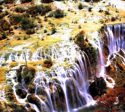 九寨沟位于四川省阿坝藏族羌族自治州九寨沟县境内,是国家级自然保护区,国家重点风景名胜区。保护区面积643平方公里,海拔2000~4760米;年均气温7.8℃;因沟内有九个藏族村寨而得名。景区四周峰簇峥嵘,雪峰高耸,在青山环抱的“Y”字型山沟内,相串相联着大小湖泊118个,瀑布群17个、激流11段、钙化滩流5处,形成中国唯一、世界罕见的以高山湖泊群、钙化滩流为主体的自然景观。水,是九寨沟风景的灵魂,因其清纯洁净、晶莹剔透、色彩丰富,堪称世界水景之王,故有九寨沟归来不看水”之说。藏寨、水磨房、栈道、经幡和藏羌歌舞等,构成了九寨沟独特的旅游文化。